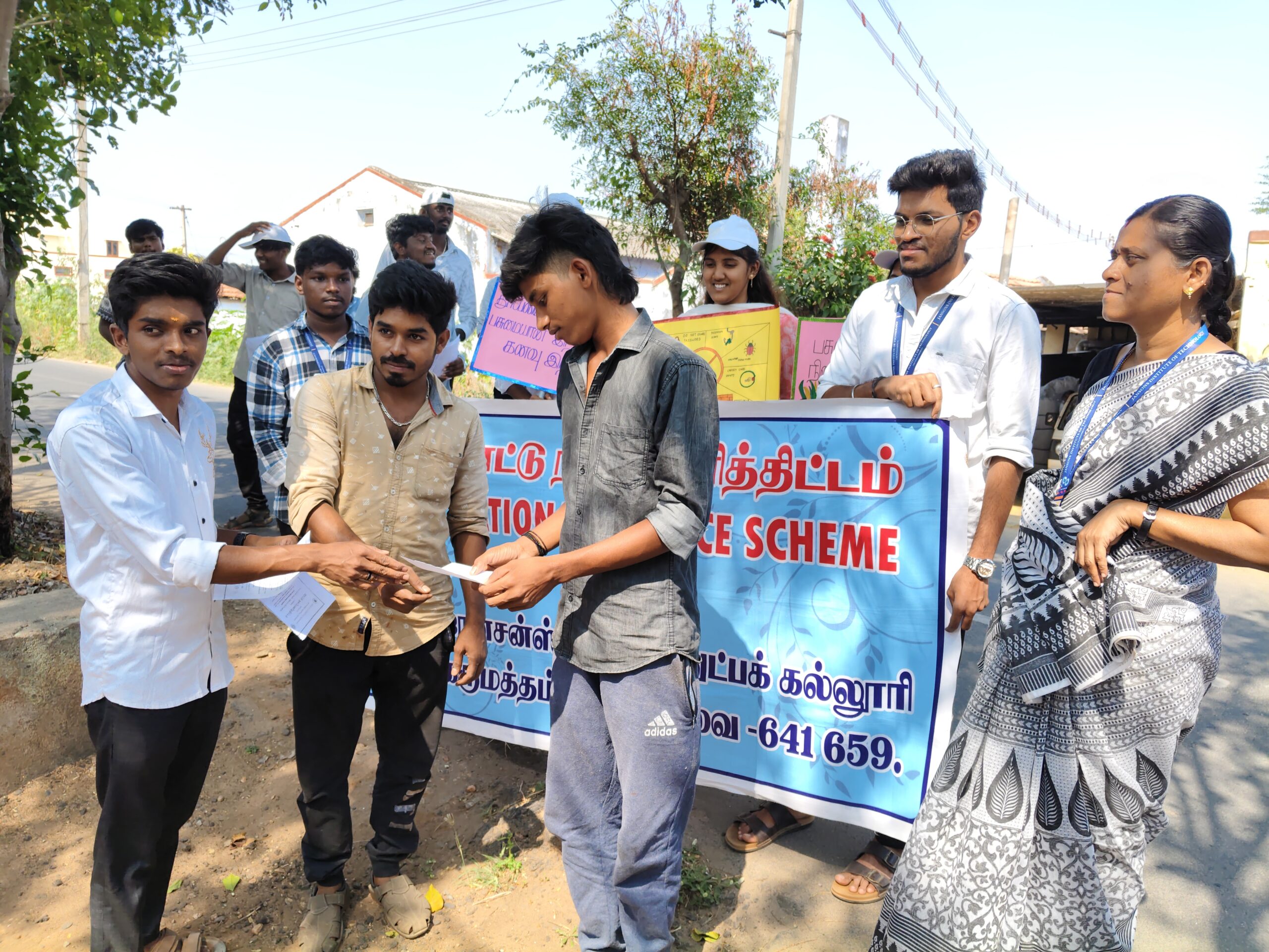 The National Service Scheme (NSS) organized a “Green Technology and Future – Awareness Camp” on 23.02.2026 at Unjapalayam Village to promote environmental awareness and sustainable practices among the local community. The program commenced at 2:00 PM with a welcome address by Mr. Aravindhan S, II ECE. This was followed by a guest speech at 2:05 PM delivered by Ms. S. Shanmugapriya from the ECO Club, JIT, who emphasized the importance of green technology and its role in protecting the environment. After the session, NSS volunteers actively engaged in creating awareness across different parts of the village. Teams of volunteers visited the South, North, East, and West sides of Unjapalayam Village to interact with residents and explain the benefits of eco-friendly technologies, waste management, and sustainable living practices. The awareness activities helped villagers understand the significance of environmental protection. The event concluded at 3:00 PM with a vote of thanks delivered by Mr. Gokulraj B, II ECE. |