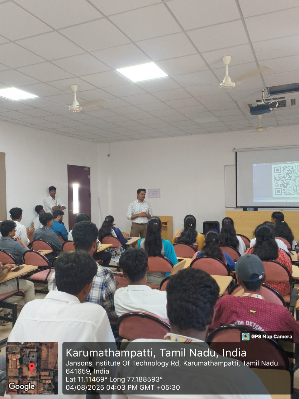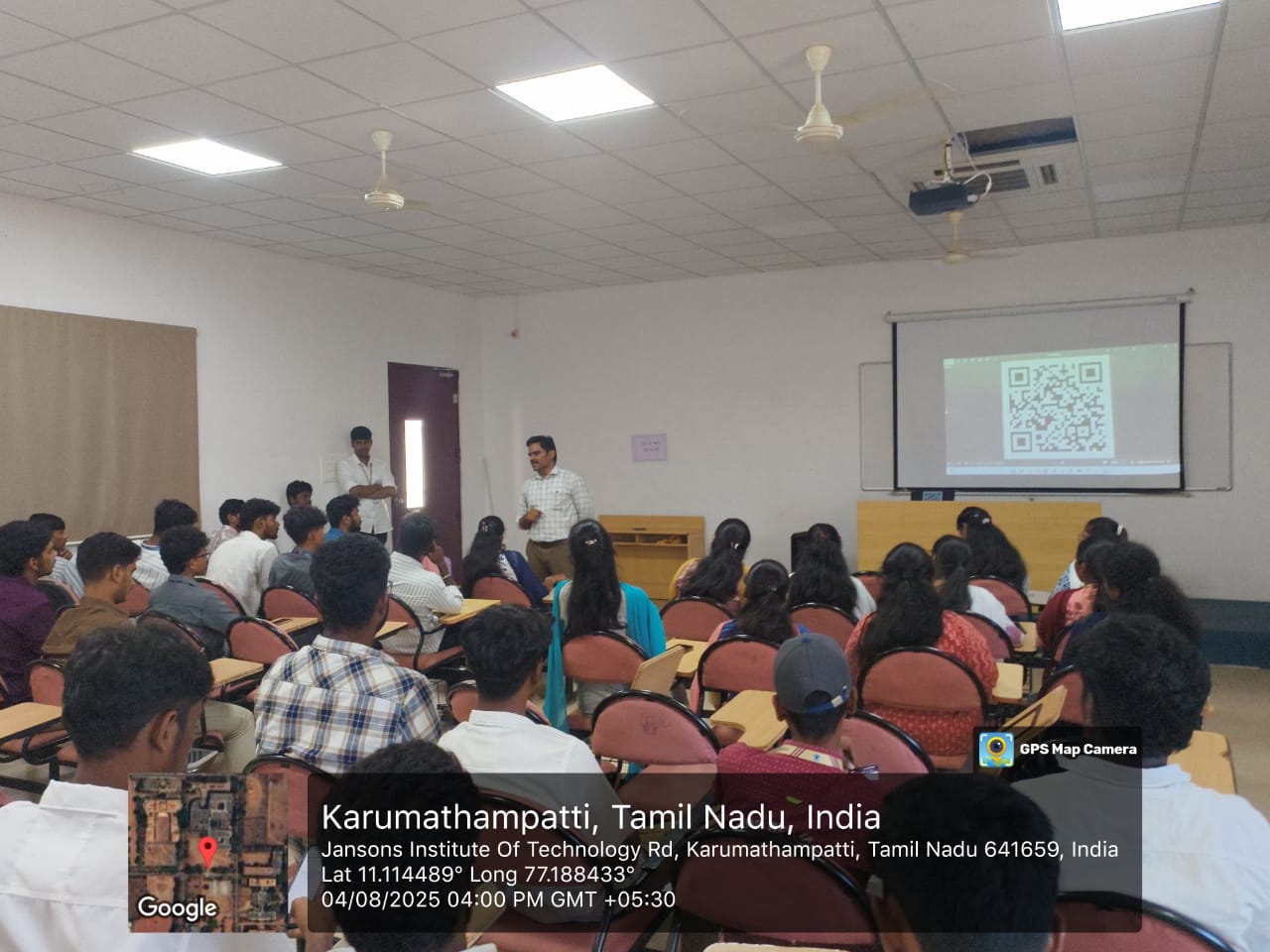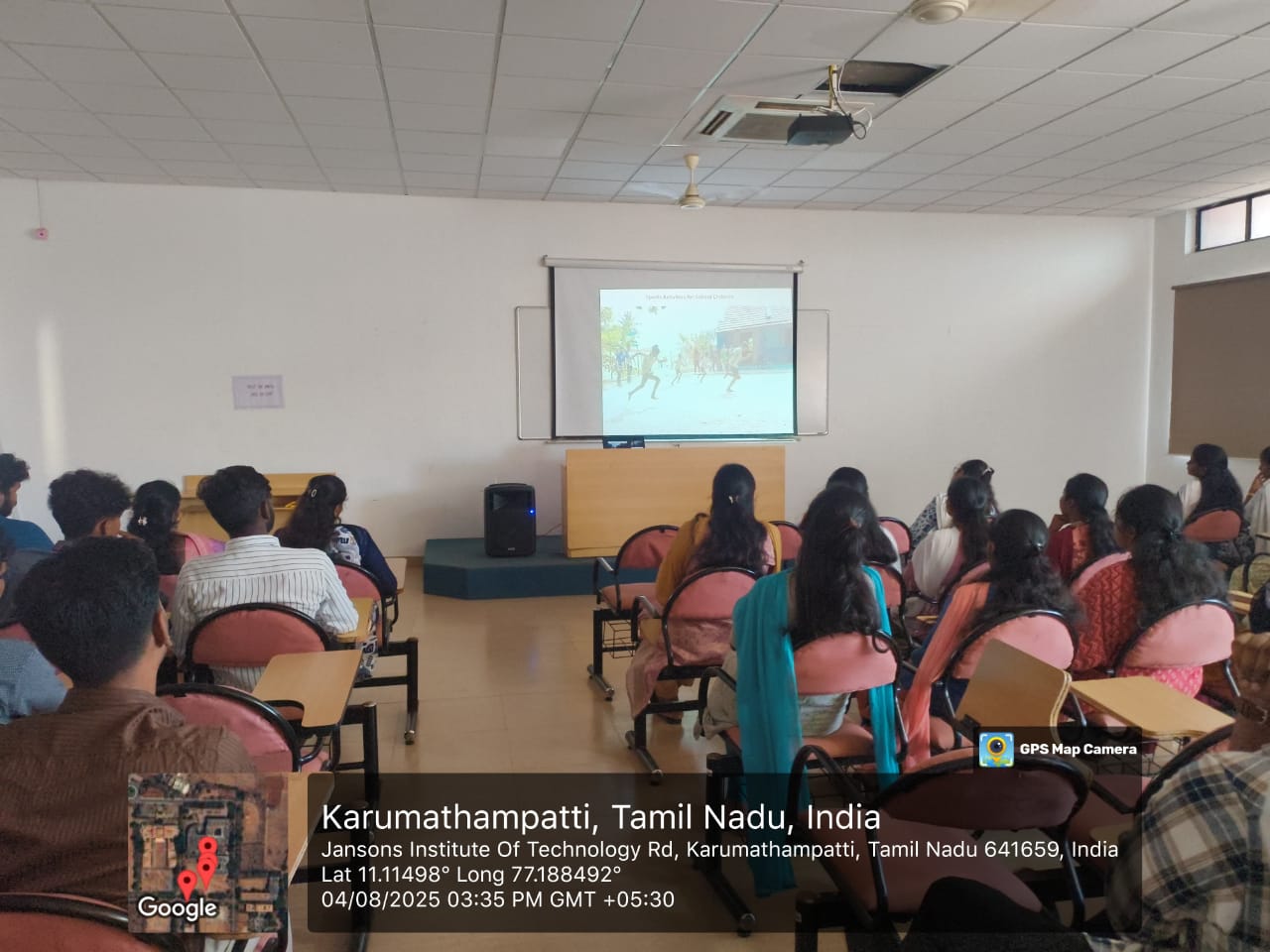 The event Igniting the Spirit of Volunteerism was conducted on August 4, 2025, from 3:15 PM to 4:15 PM at the Seminar Hall, Jansons Institute of Technology. Organized by the National Service Scheme (NSS) in association with the NDLI Club, the programme aimed to inspire students to recognize the importance of volunteerism in personal growth and community development. The session began with a warm welcome address by Ms. Priyadharshini, setting the tone for the event.This was followed by Ms. Anusuya introducing an engaging audio-visual presentation that highlighted the value of volunteer work, showcasing its role in fostering empathy, teamwork, and leadership. Ms. Vaishnavi then introduced the guest speakers, who shared insightful perspectives on how youth can contribute to social change through service and responsibility. Their inspiring talks encouraged students to view volunteerism as a lifelong commitment. The programme concluded with a heartfelt vote of thanks delivered by Mr. Abihishek Reddy, appreciating the efforts of organizers, speakers, and participants.