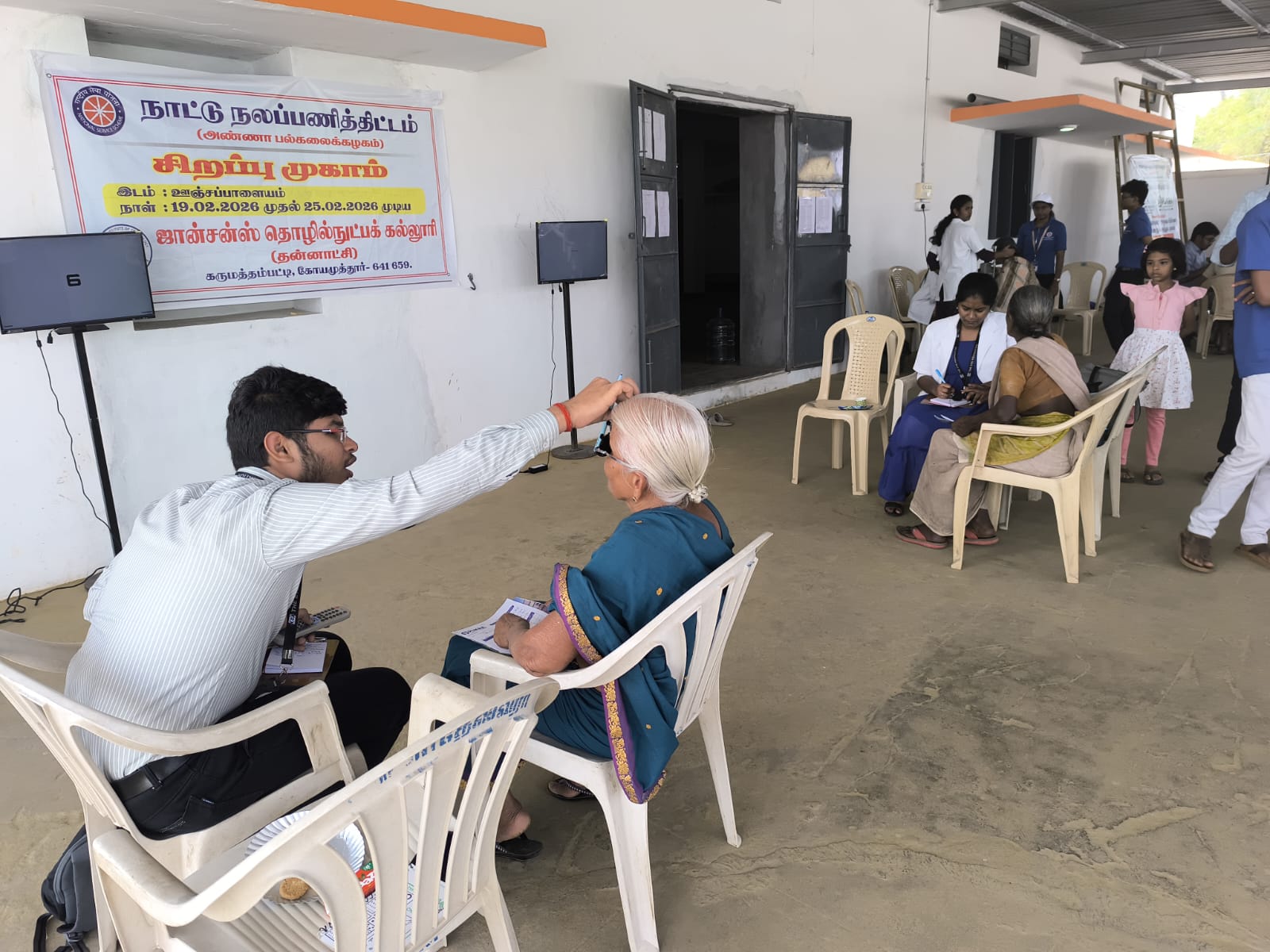 The Free Eye Checkup and General Medical Camp was organized by the National Service Scheme in association with The Eye Foundation, Coimbatore, and Pukra Super Speciality Hospital on 21.02.2026 at Unjapalayam Village. The program began at 10.00 AM with a welcome address delivered by Mr. Sivaprakash S, II CSBS. Following the inauguration, a team of doctors conducted free eye examinations and general medical checkups for the villagers. The medical professionals carefully examined patients, provided consultations, and offered guidance regarding eye care, health maintenance, and disease prevention. Villagers actively participated and benefited from the free health services provided during the camp. After the checkup session, the doctors conducted a health awareness guidance session where they educated the public on maintaining good health, proper hygiene, and the importance of regular medical checkups. The event concluded with a vote of thanks delivered by Ms. Vinitha M, II ECE, appreciating the support of the medical team and volunteers.
