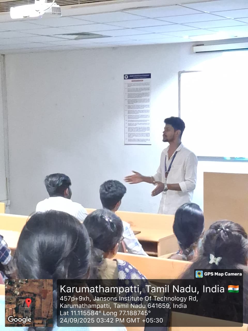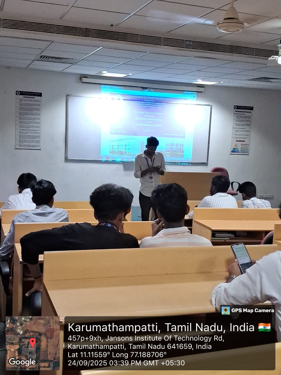 The NSS Day Celebration on 24th September 2025 was held at JIT Campus with the theme “Viksit Bharat 2047.” The event commenced at 3:15 PM with a warm welcome address by Ms. Punithavathi A, followed by a motivating NSS speech in English delivered by Mr. Mohammed Afsar S, highlighting the values of service, unity, and leadership among youth. Ms. Vinitha M then addressed the gathering in Tamil, emphasizing the cultural significance of NSS in nurturing socially responsible citizens. The key highlight of the programme was an inspiring speech on “Viksit Bharat 2047” by Dr. K. Senthamil Selvan, Programme Officer, National Service Scheme, who shared insights on the role of students in shaping a developed India by 2047 through innovation, discipline, and service. The event concluded with a vote of thanks by Ms. Bharkavi S. Overall, the celebration instilled a sense of patriotism, service spirit, and responsibility among students.