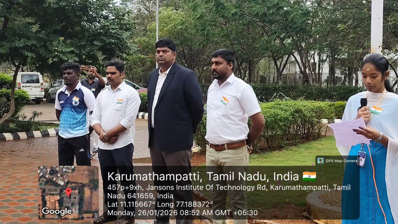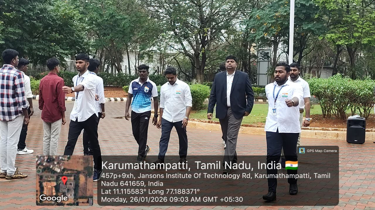 The Republic Day Celebration was conducted on 26th January 2026 at 8:30 AM at JIT Campus, organized by the National Service Scheme in association with the Youth Red Cross. The program began with the flag hoisting ceremony followed by the National Anthem, creating a sense of pride and unity among participants. Faculty members addressed the gathering, highlighting the significance of the Indian Constitution and the responsibilities of citizens in strengthening democracy. NSS volunteers and Youth Red Cross members actively participated in organizing the event and maintaining discipline. Cultural performances, patriotic speeches, and awareness messages reflecting national integration and social harmony were presented by students. The celebration emphasized the values of service, equality, and commitment to the nation. The event concluded with a pledge to uphold constitutional values and contribute positively to society, reinforcing the spirit of patriotism and responsible citizenship among students.